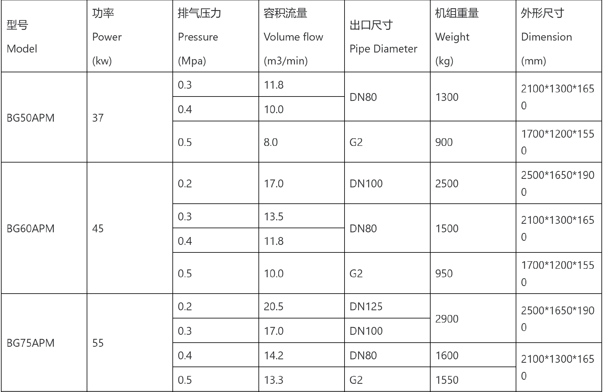 低压永磁变频螺杆空压机技术参数/Technical parameter
